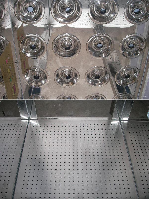 對比優(yōu)勢:市場上現(xiàn)有的風(fēng)淋設(shè)備——結(jié)構(gòu)簡單、左右兩側(cè)出風(fēng)吹淋、易引起亂流和渦流、除塵效果欠佳。