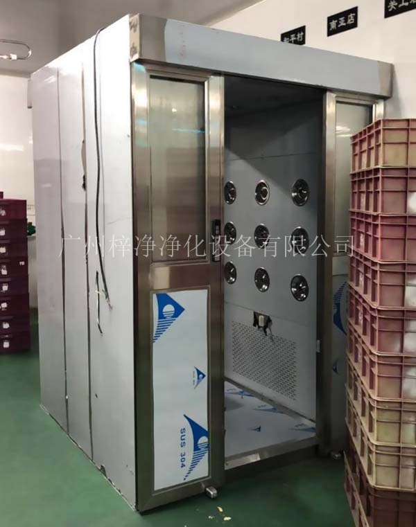 風淋室是人員進入潔凈室無塵車間所必備的凈化設備,通用性強,可與所有的潔凈室和潔凈廠房配套使用,工作人員進入車間時,必須通過此設備,用強勁潔凈的空氣,由可旋轉噴嘴從各個方向噴射至人身上,有效而迅速清除去附著在衣服上的灰塵、頭發、發屑等雜物,它可以減少人進出潔凈室所帶來的污染問題。風淋室的兩道門電子互鎖,可以兼起氣閘室的作用,阻止外界污染和未被凈化的空氣進入潔凈區域。杜絕工作人員將頭發,灰塵、細菌帶入車間,達到工作場地嚴格的無塵凈化標準,生產出高質量的產品。