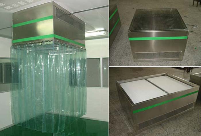 百級(jí)層流罩工作原理:百級(jí)層流罩采用垂直單向流的氣流形式,送風(fēng)先要通過初效過濾器進(jìn)行預(yù)過濾,將氣流中的大顆粒粉塵粒子處理掉。經(jīng)過預(yù)處理后的空氣,再經(jīng)過高效過濾器進(jìn)行二次過濾,以起到充分保護(hù)高效過濾器的作用。在離心風(fēng)機(jī)提供的壓力下,通過高效過濾器,使之達(dá)到潔凈要求。所有氣流均經(jīng)過高效過濾器處理,所以送風(fēng),排風(fēng)均不帶殘余粉塵,避免了二次污染。由于在工作區(qū)域形成穩(wěn)定的單向流,起到保護(hù)外部環(huán)境的作用。FFU層流罩現(xiàn)場(chǎng)安裝百級(jí)層流罩結(jié)構(gòu)說(shuō)明:
