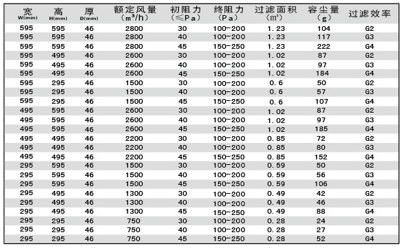 紙框折疊式初效過濾器風阻及運行條件說明