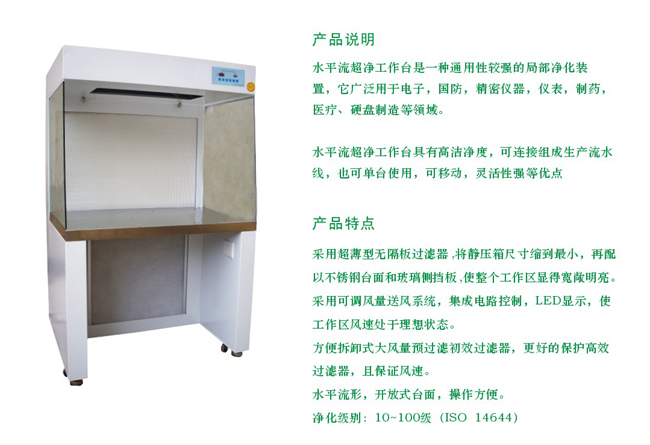 水平流超凈工作臺是一種通用性較強的局部潔凈工作臺,適合高潔凈度的生產車間.水平流超凈工作臺圖片