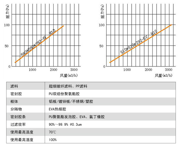 有隔板亞高效空氣過濾器風阻圖及運行條件